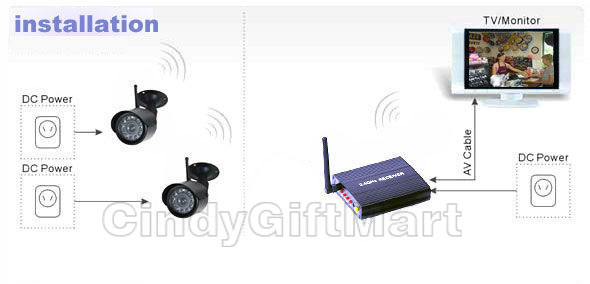 • Advantage: This kit is camera to receiver connection use 2.4GHz wireless transmission, No cables are used between the camera & receiver. Fast and easy to install, low cost (You can click here to get the completely digital Camera, no Interference problem and truly Wi-Fi friendly)